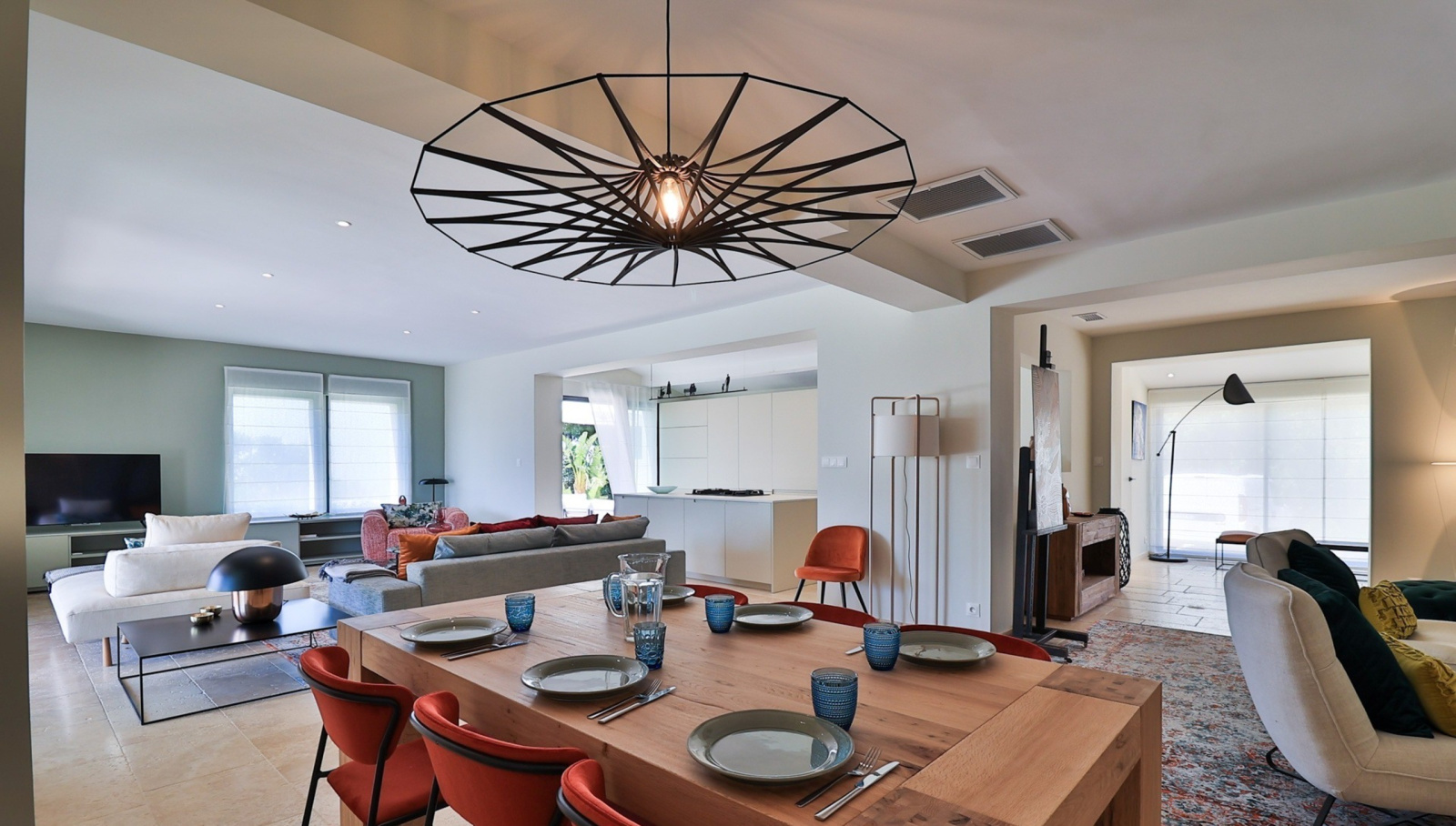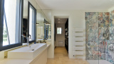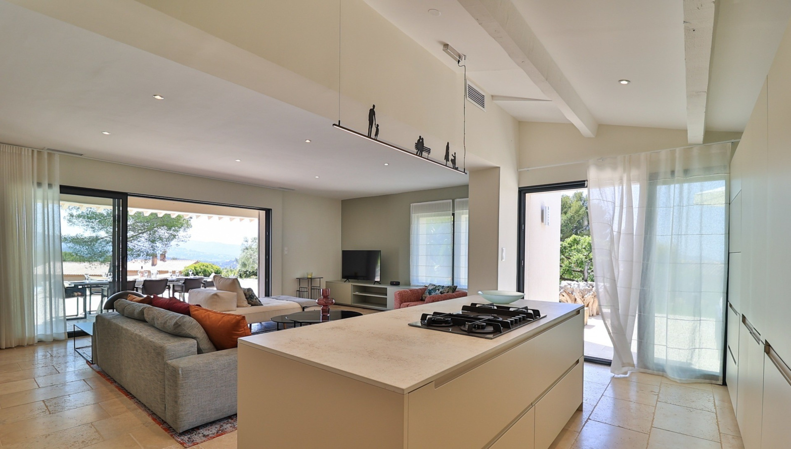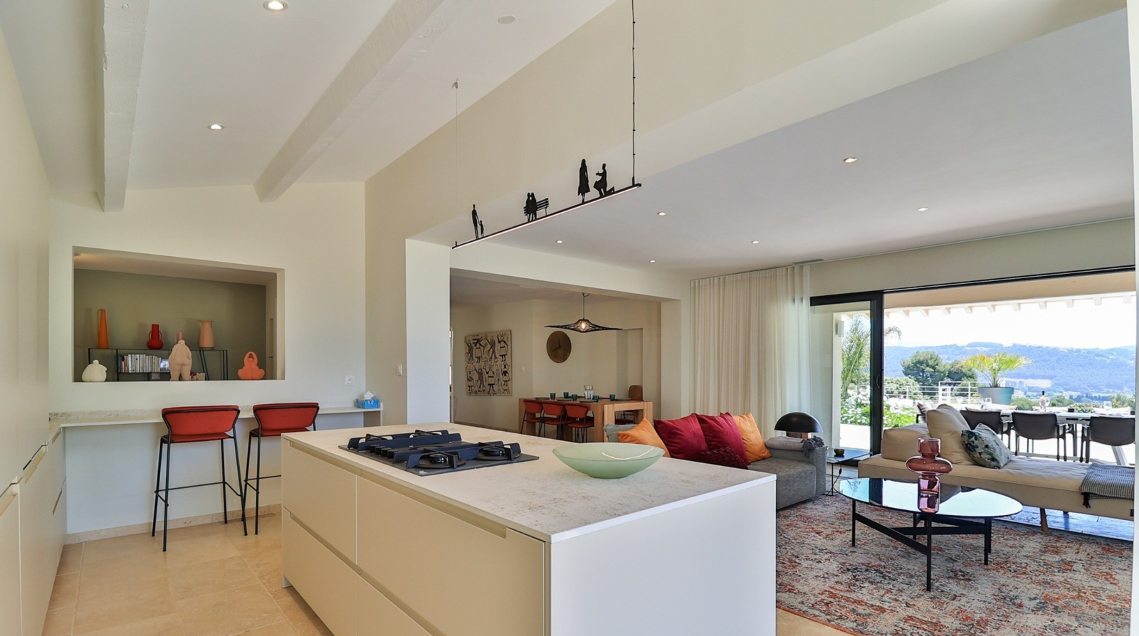 Bien-être et sérénité au quotidien La villa est entièrement climatisée, dotée d’une cuisine haut de gamme ouverte sur un vaste salon et une salle à manger invitant à la convivialité, sublimée par les grandes baies vitrées.