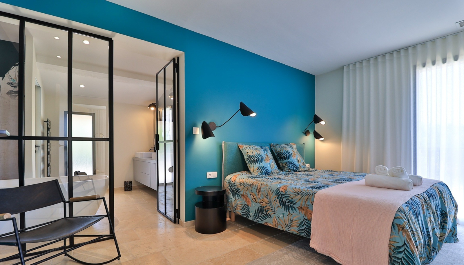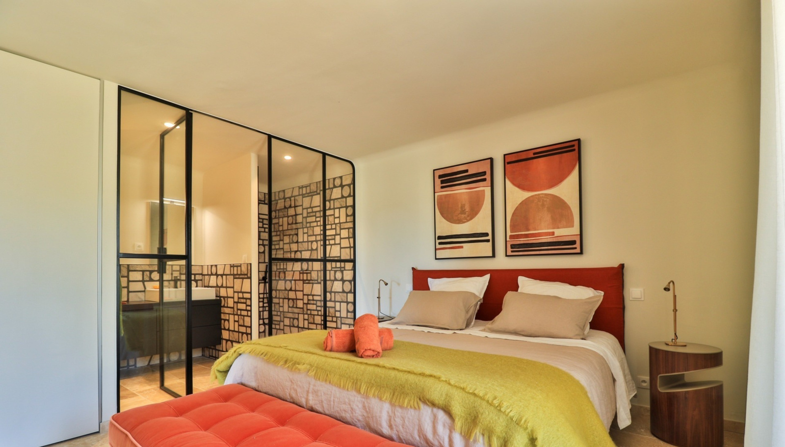 Un art de vivre luxueux, dans une villa pensée pour l’excellence Quatre suites somptueuses vous accueillent avec dressing privé, salle de bain et toilettes indépendantes, garantissant discrétion et confort absolu. Deux chambres disposent de lits King Size, tandis que les deux autres sont modulables avec lits jumeaux , s’adaptant à vos préférences avec souplesse.