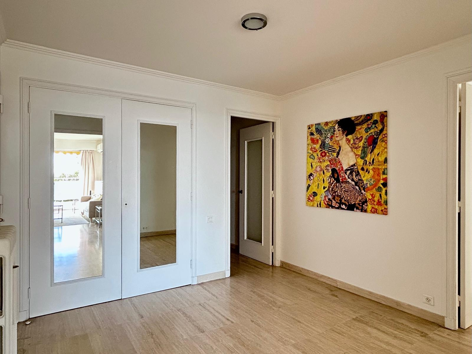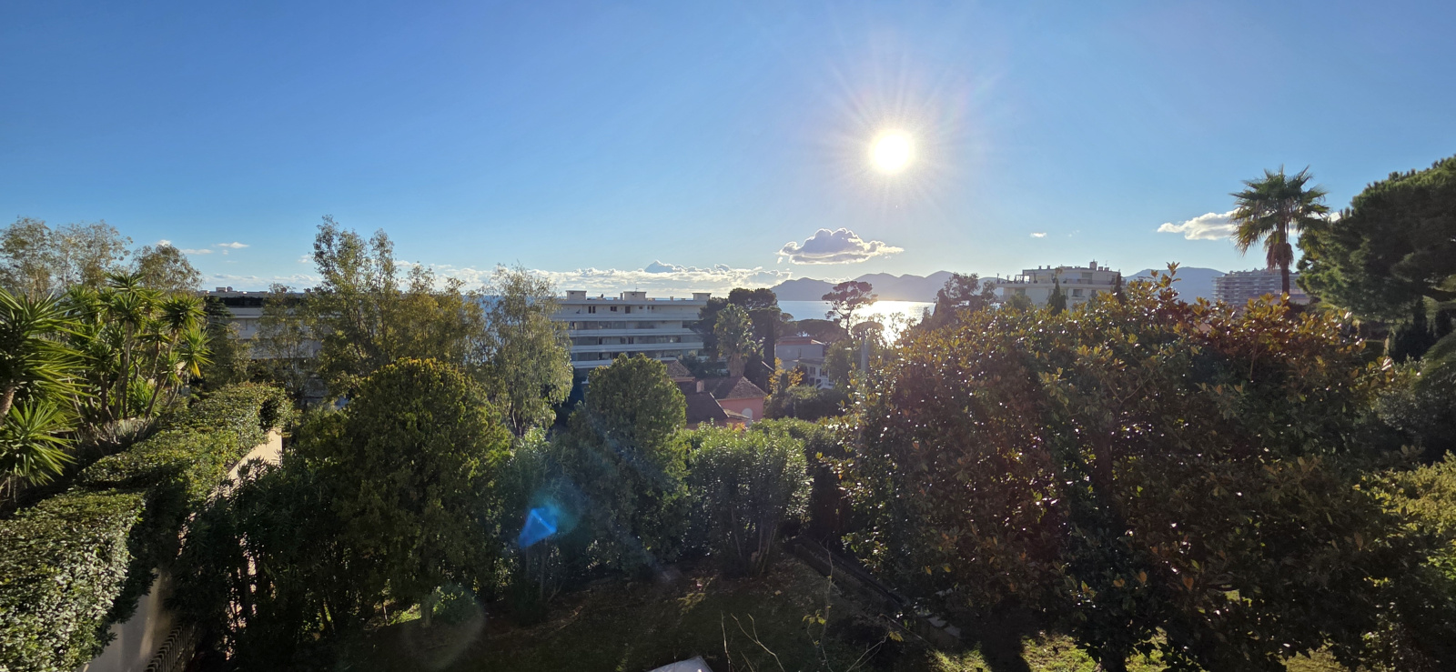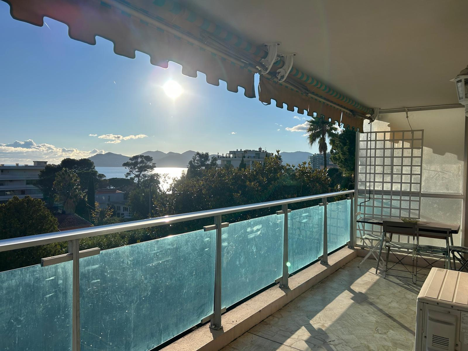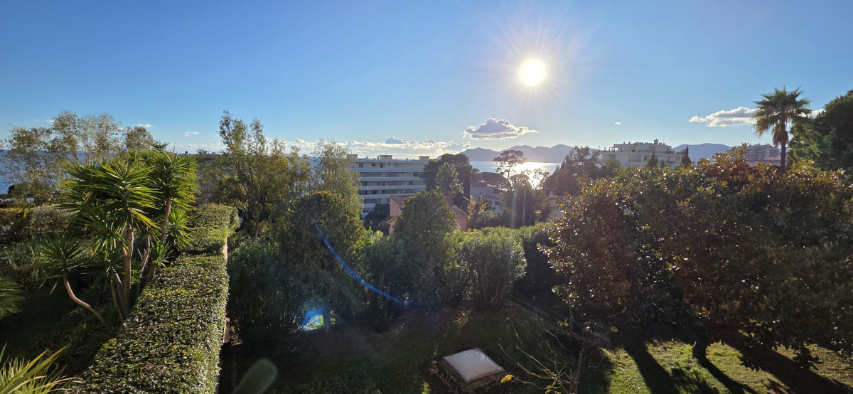 Localisation au sein d'une résidence de standing sécurisée avec parc clos paysager, piscine et gardien pour cet appartement qui se caracterise par une vue dégagée sur la verdure luxuriente du parc, les collines de l'Esterel et la mer.