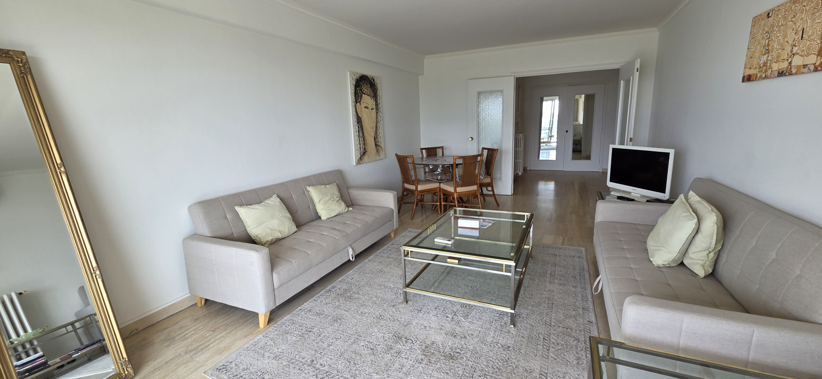 Aujoud'hui configué en 3 pièces avec hall de reception, cuisine avec loggia et porte de service, 2 grandes chambres, WC indépendant, dressing, salle d'eau avec 2e WC, chambre 2 et séjour ouvert sur terrasse SUD.