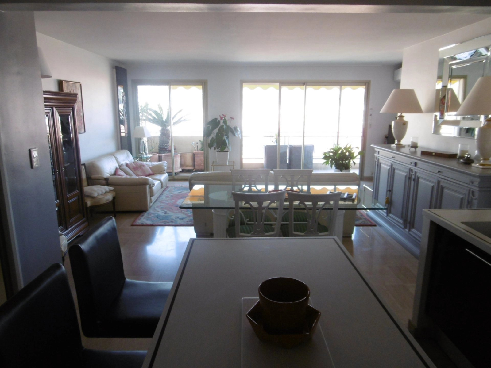 Superbe 3P traversant. 81 m².Vue panoramique Californie. 2 terrasses. Splendide cuisine laquée noire ouverte sur vaste séjour, 2 baies vitrées s'ouvrant sur terrasse. Suite parentale avec baie vitrée sur seconde terrasse. 2 ème Ch, baie vitrée sur terrasse. Salle de douche italienne. Wc. Stores et volets électriques. Garage et cave en S-S. A 550 m de la rue d'Antibes et 600 m du marché Forville. A 750 m du palais, de la mer et des plages. Vous faites tout à pied ! Prestations haut de gamme. Situation géographique judicieuse. Les charges incluent le chauffage, l'eau chaude et froide avec comptage individuel et le gardien.