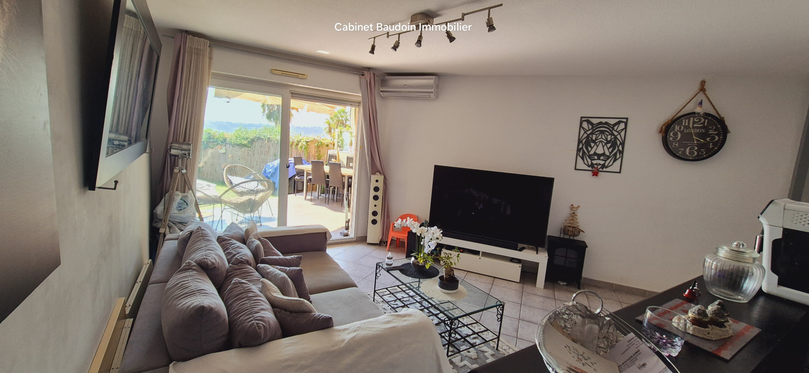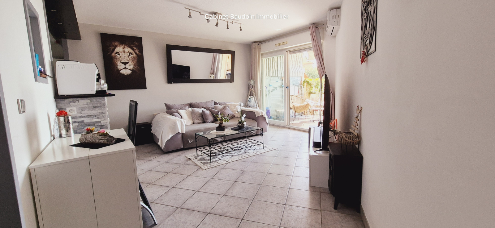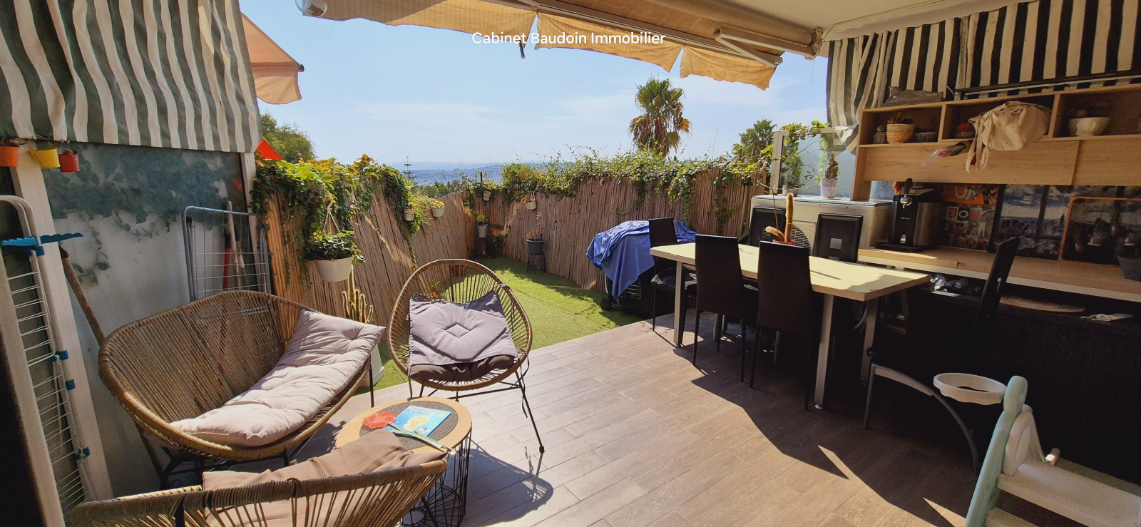 La pièce de vie ainsi que la chambre s'ouvrent sur un espace exterieur d'environ 15m², carrelé sur 10 m² avec store banne motorisé.